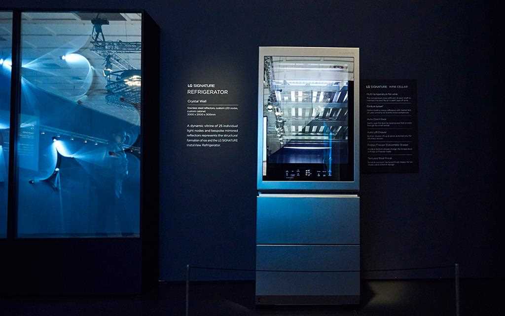 And lastly, the original LG SIGNATURE refrigerator was next to its latest addition to show off the knock-on door and automatic door opening functions that have made it so famous. The refrigerators were positioned next to a crystal wall, created with light nodes and bespoke mirrored reflectors to represent the structural formation of ice.